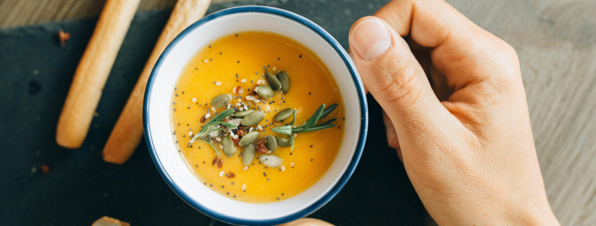 Actuellement, je travaille beaucoup le potimarron. C’est un légume que j’aime bien parce qu’on peut le cuire avec la peau. C’est presque un légume zéro déchet. On peut autant utiliser la peau, la chair et même les petites graines et les chairs grillées. La peau du potimarron est un vrai plus, parce qu’elle a un petit goût de noisette. C’est vraiment mon produit phare du moment. En plus de ça, il est très riche en bêta-carotène, donc bon pour la peau et l’immunité, un peu comme la carotte. On peut le mettre dans les soupes, dans les pâtes… Le potimarron est source de fibres, faible en calories et rassasiant.